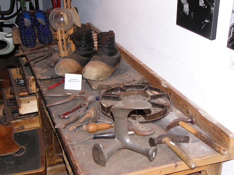 Die Schusterwerkstätten waren oft lichtarme Löcher, bis in den letzten Winkel voll gestellt mit allerlei